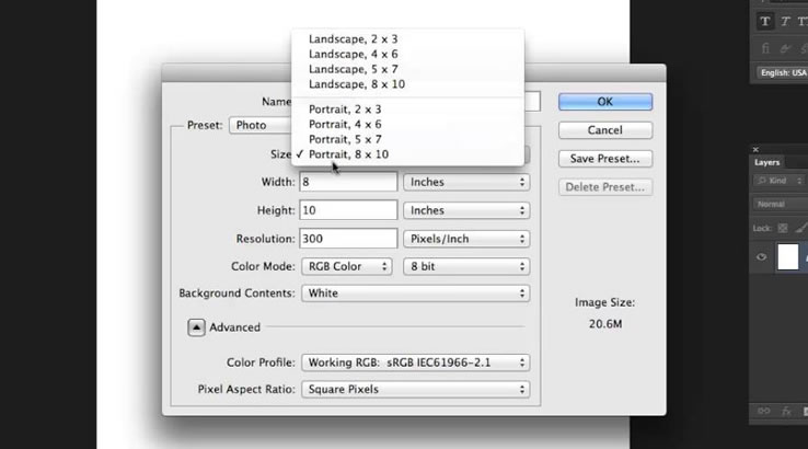 Let’s open a new document using the settings shown below.